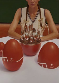 身着白色网球裙,头戴遮阳帽,这两位年轻女士在Christofle的观众面前展开竞技。带着Christofle所珍视的那份俏皮感,她们面临着一系列挑战对决:如何优雅地享用一道汤或水果果?如何优雅地小口吃沙拉?抿尝咖啡的美妙方式又是什么?以及最终考验:谁能更好地摆放Roland-Garros红土色联名款心境蛋?