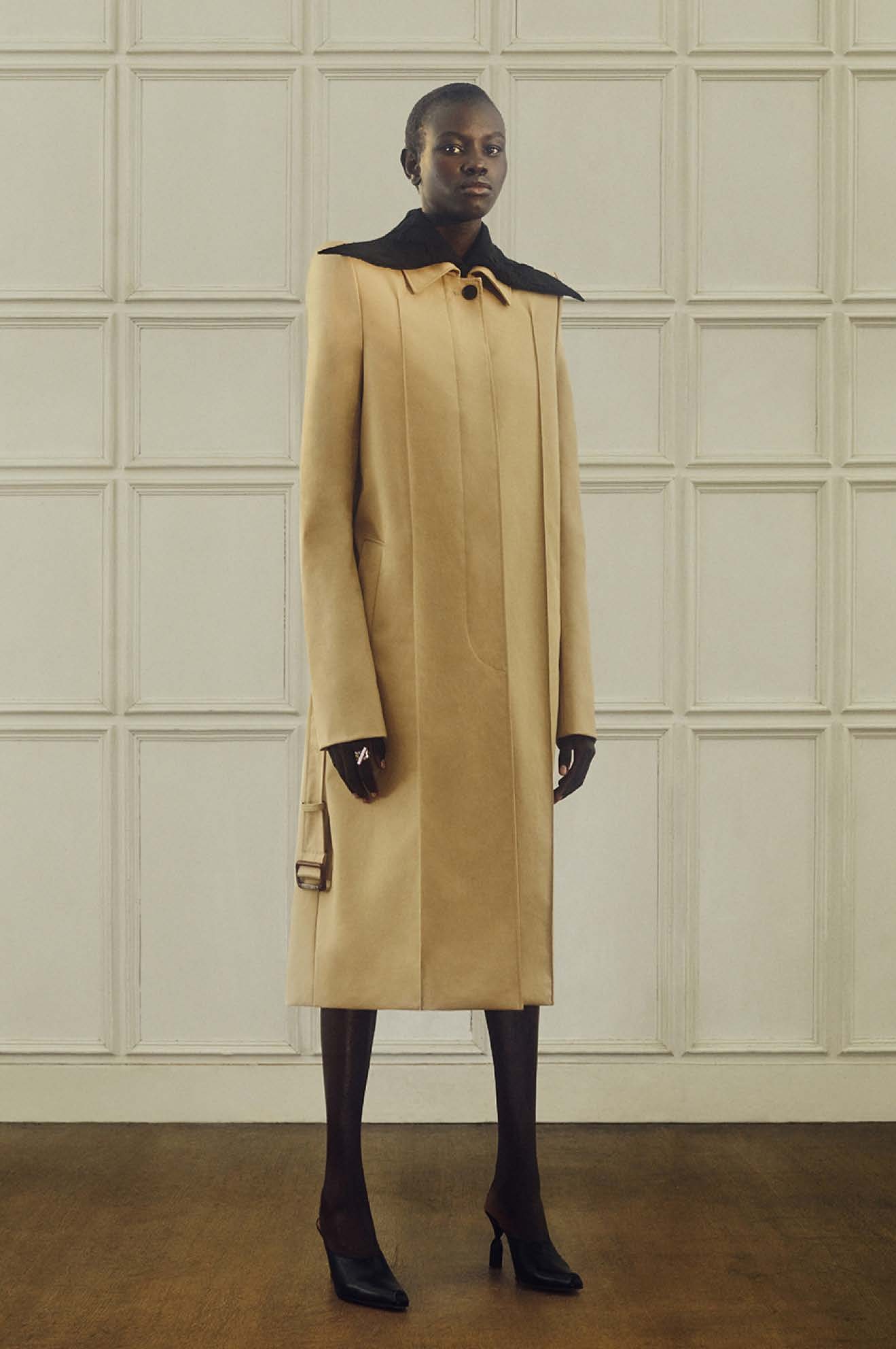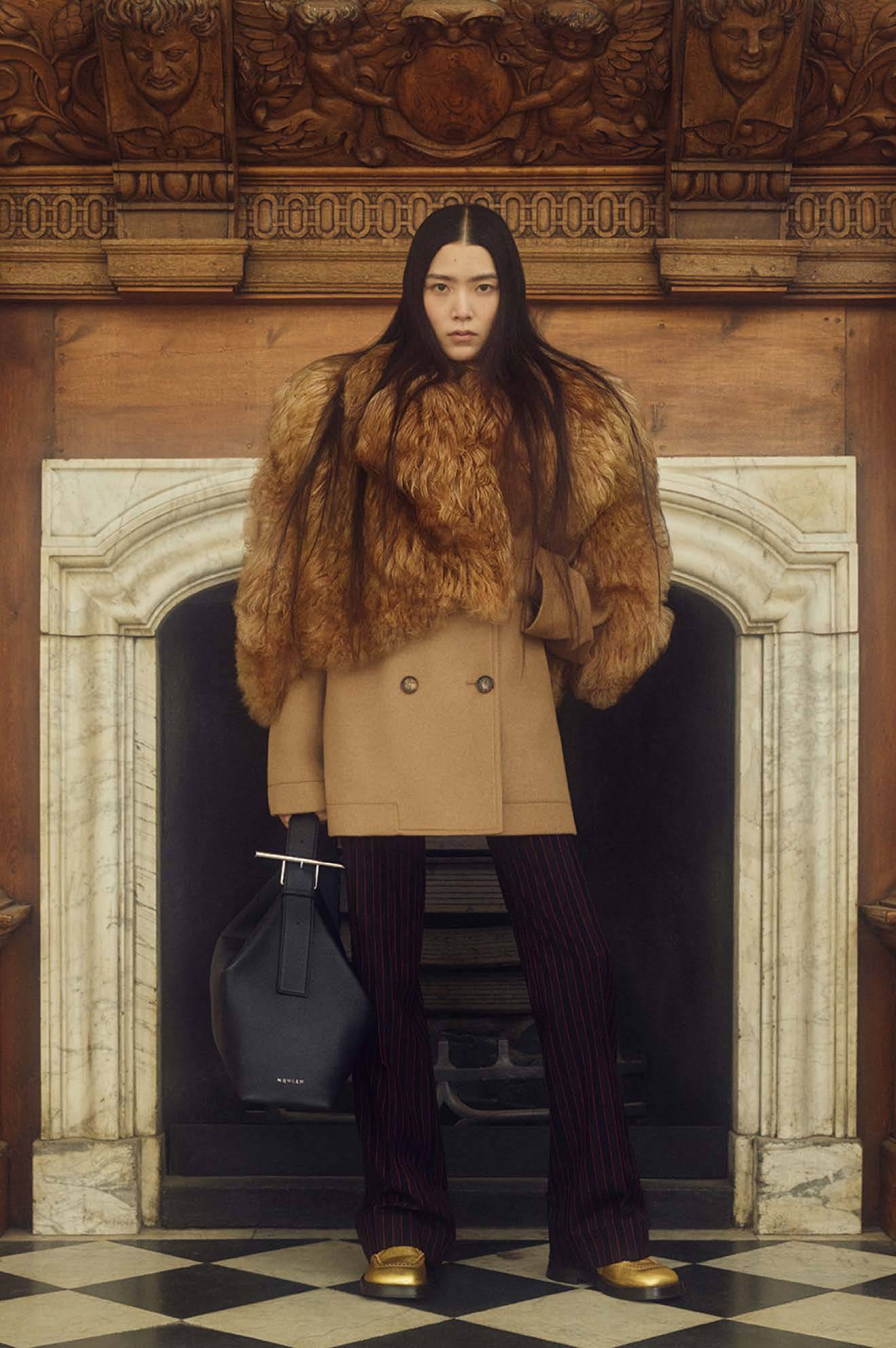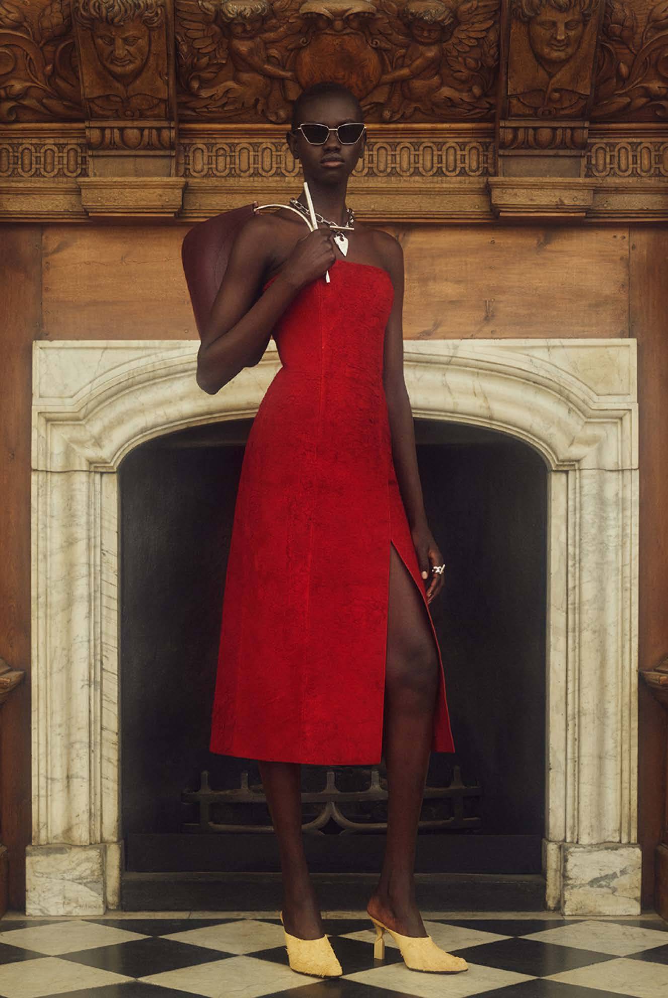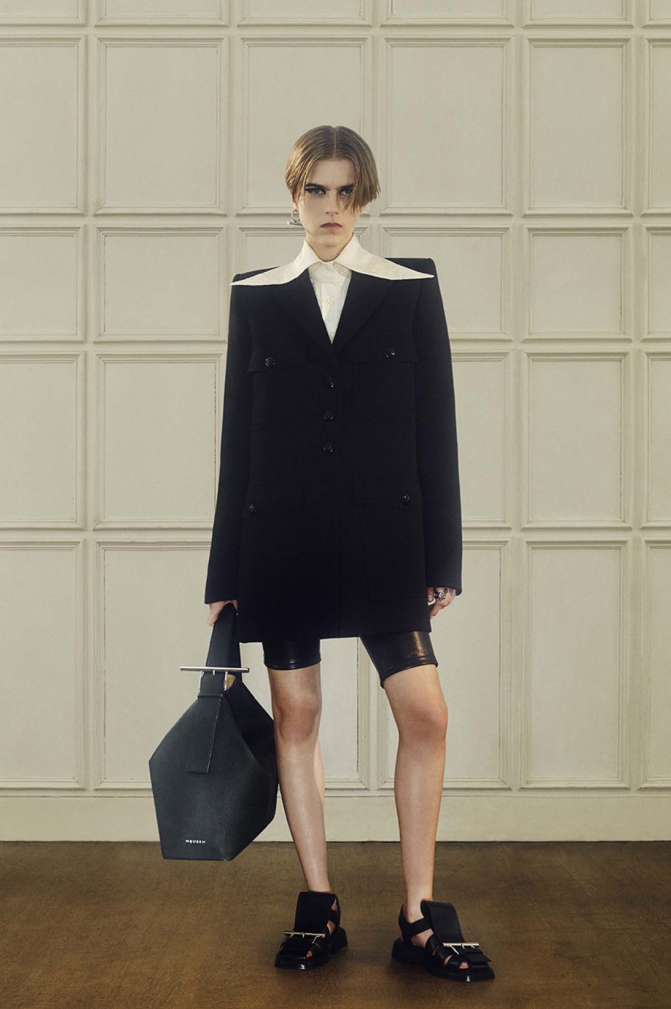 作为一个不设秀场的非主要季节系列,相较于2024秋冬系列首秀,该系列呈现出更加适合街头的,或者是更加适合府邸聚会的氛围。McGirr谈到这组大片的理念是“女孩男孩一起聚会,穿着对方的衣服。”聚焦剪裁以及日常穿搭中的点睛单品,如饰有立起来超过耳朵位置领口的毛衣、夸张饰裙之上的紧身比例皮夹克,以钉饰流苏刺绣装饰前方口袋的牛仔裤。T型金属扣饰则将朋克风的气质延伸至了手袋和鞋履。