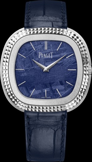 与表壳的精美纹饰相映衬,蓝色陨石表盘呈现出深邃的色调和独特的光泽质感。珍贵的陨石材质,巧妙致敬PIAGET伯爵在装饰宝石领域的标志性专长,亦是PIAGET伯爵专用于打造非凡杰作的匠心之选,为全新安迪·沃霍尔腕表更增添珍稀非凡的魅力。太妃指针和优雅时标则以复古设计,凸显出腕表的独到个性。