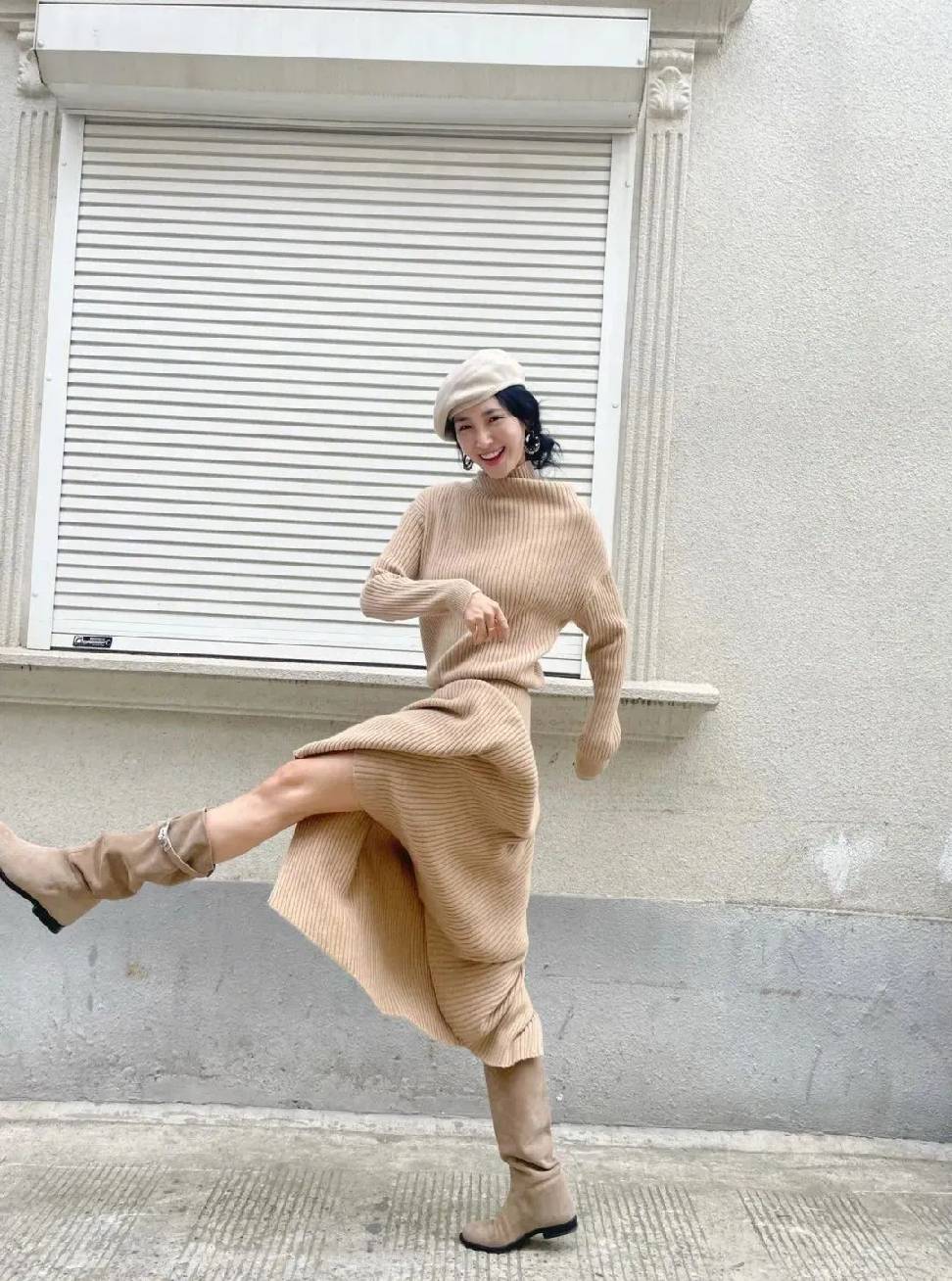 好久不见佟丽娅的街拍,棕色造型温暖惬意。