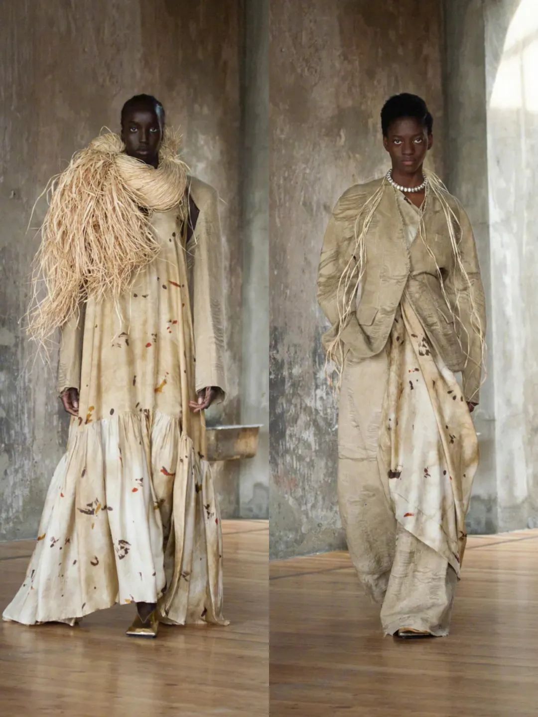 这一季,设计师王汁在非洲旅行时受大自然启发,将泥土岩石、树木草编转化为面料纹理,呈现出一场质朴简约而又充满自由野性的大秀。