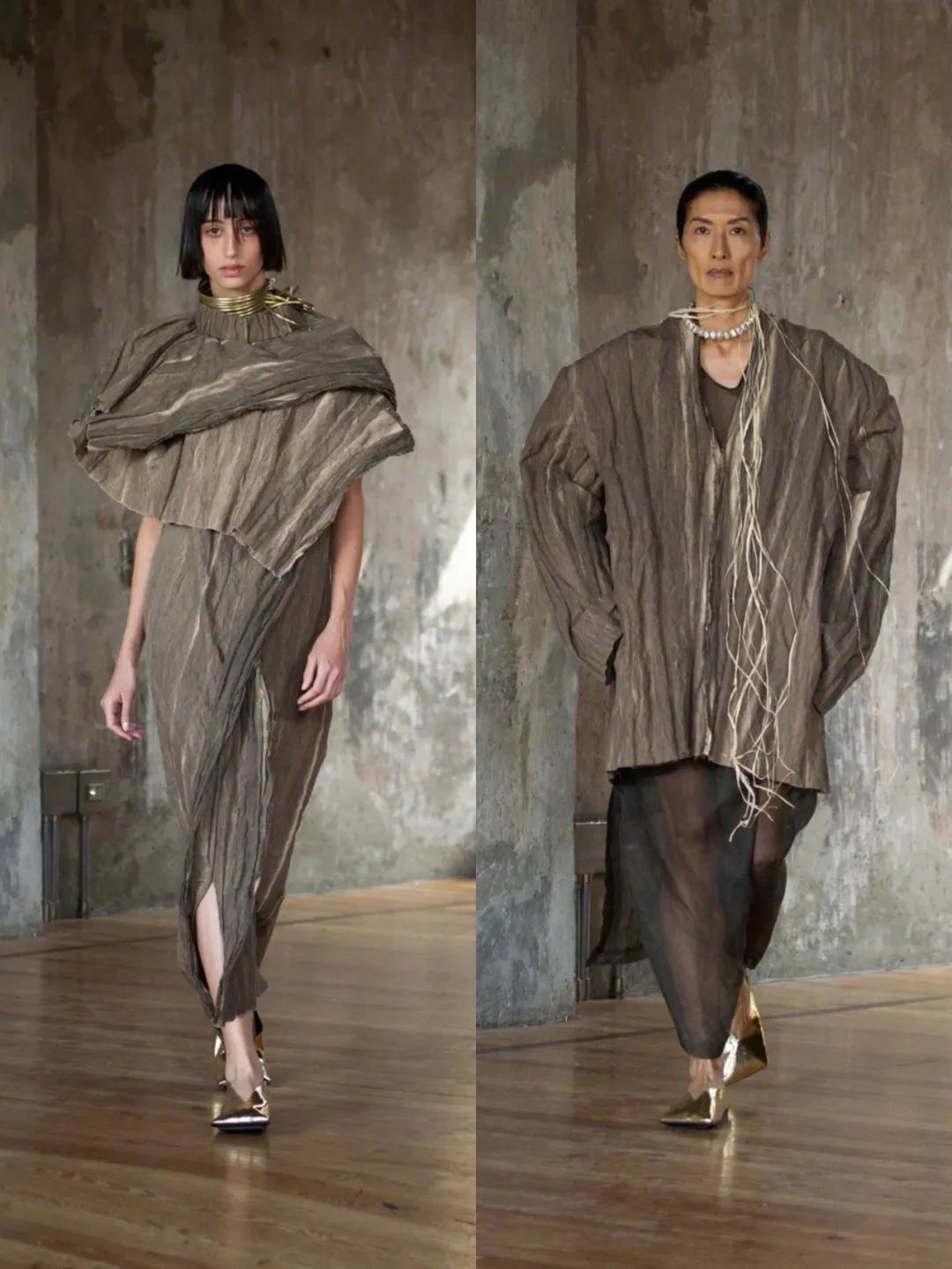 侘寂美学这两年在东方服装中也很常见,特别是中国设计师的作品。Peng Tai会在面料上用中草药在棉麻、羊毛、丝等天然面料进行染制,留下的独一份肌理手感,展现返璞归真的中式之美。