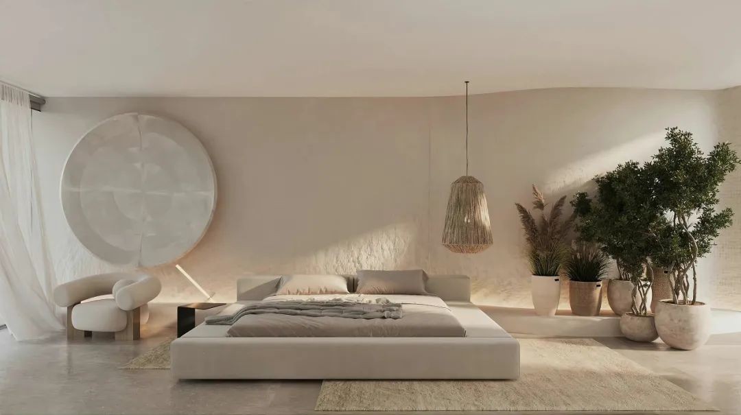 侘寂美学在家装中的表现尤为典型,设计师通常不会对水泥、树木等原始形态经过更多加工,但斑驳的做旧感不一定意味着暗淡。来自乌克兰的侘寂美学建筑设计师Sergey Makhno透过天然材料,比如木材、混凝土、粘土、亚麻等材质来展现简约审美,它也能是充满生气的、温暖的。