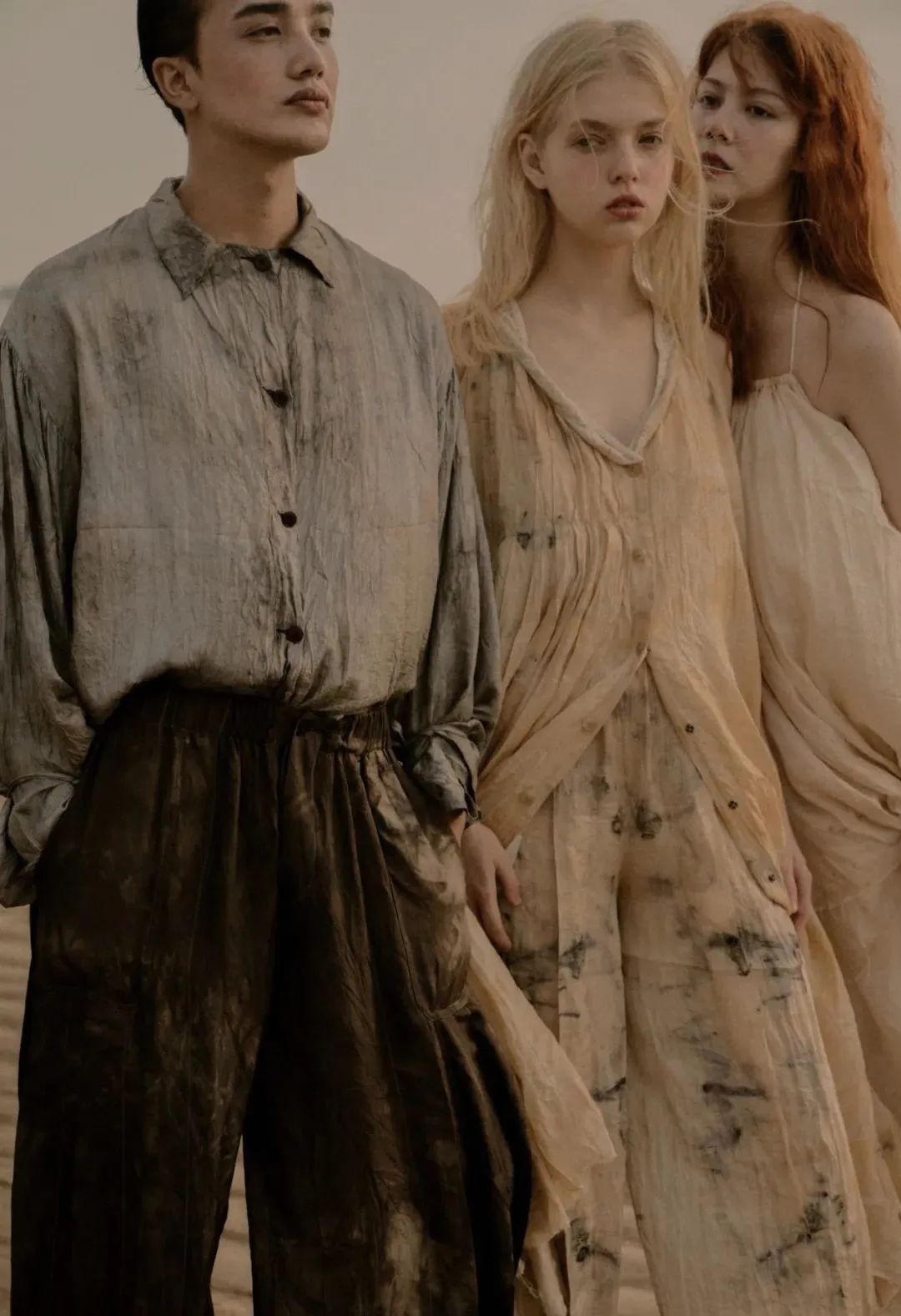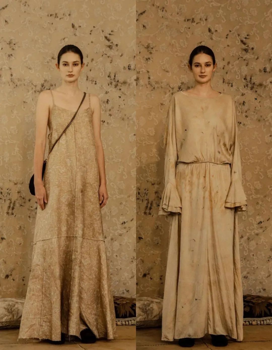 除此之外,MUTEDANCE、A Tentative Atelier等当下热门的工匠风品牌都喜欢用做旧色来打造仙风道骨的手作感。旧旧的颜色经过时间的洗礼散发着枯槁的棕色,从淡到深无一不在强调怀旧情绪。