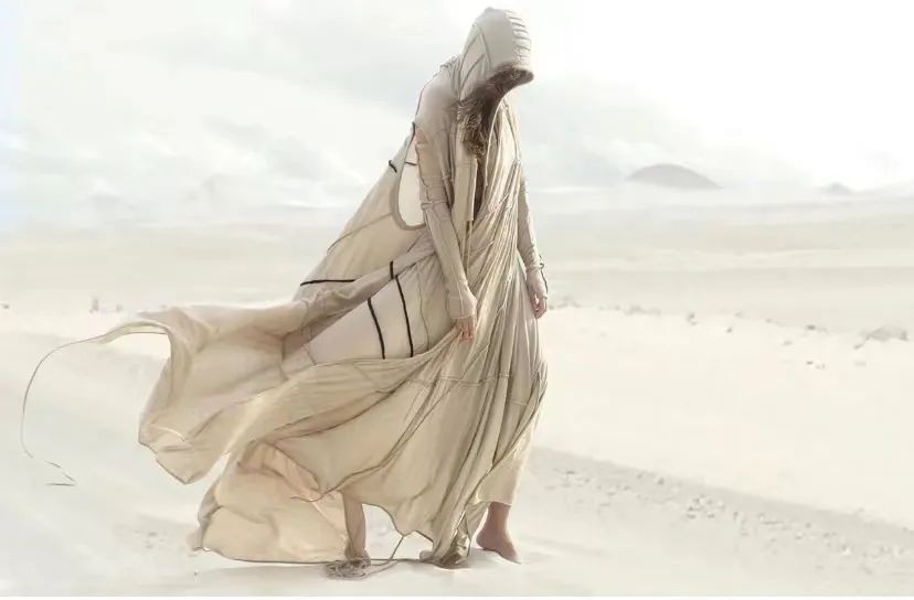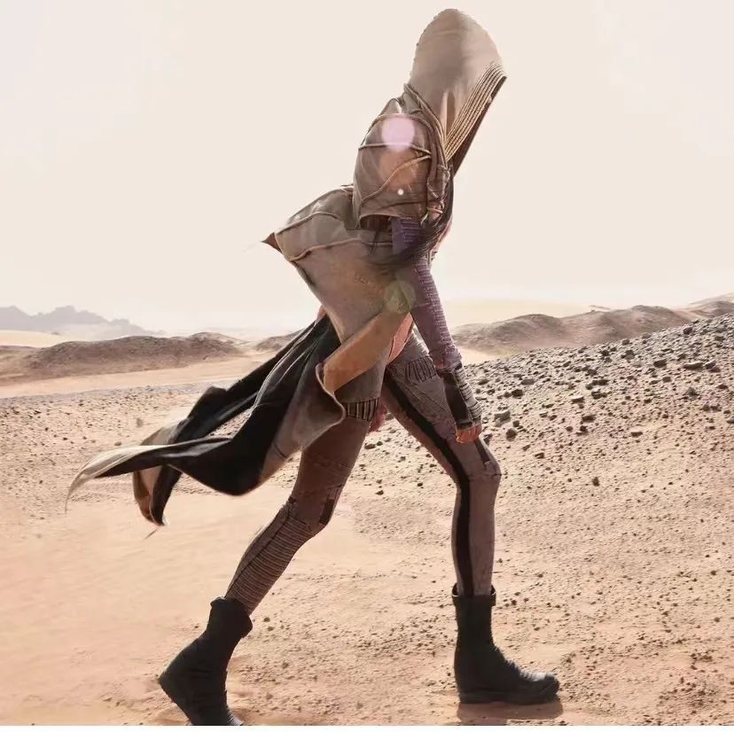 蒸馏服和破破烂烂的头巾构成了寂寥与萧条的极致画面,《沙丘》的走红顺势带火了这个本来小众的风格——末日废土风。