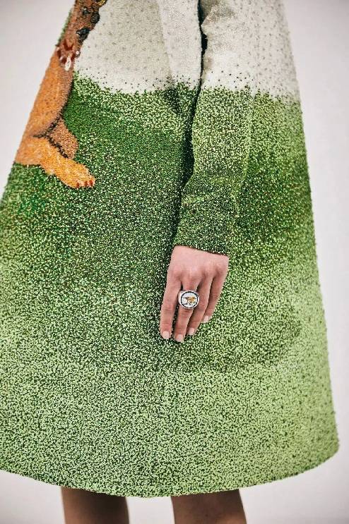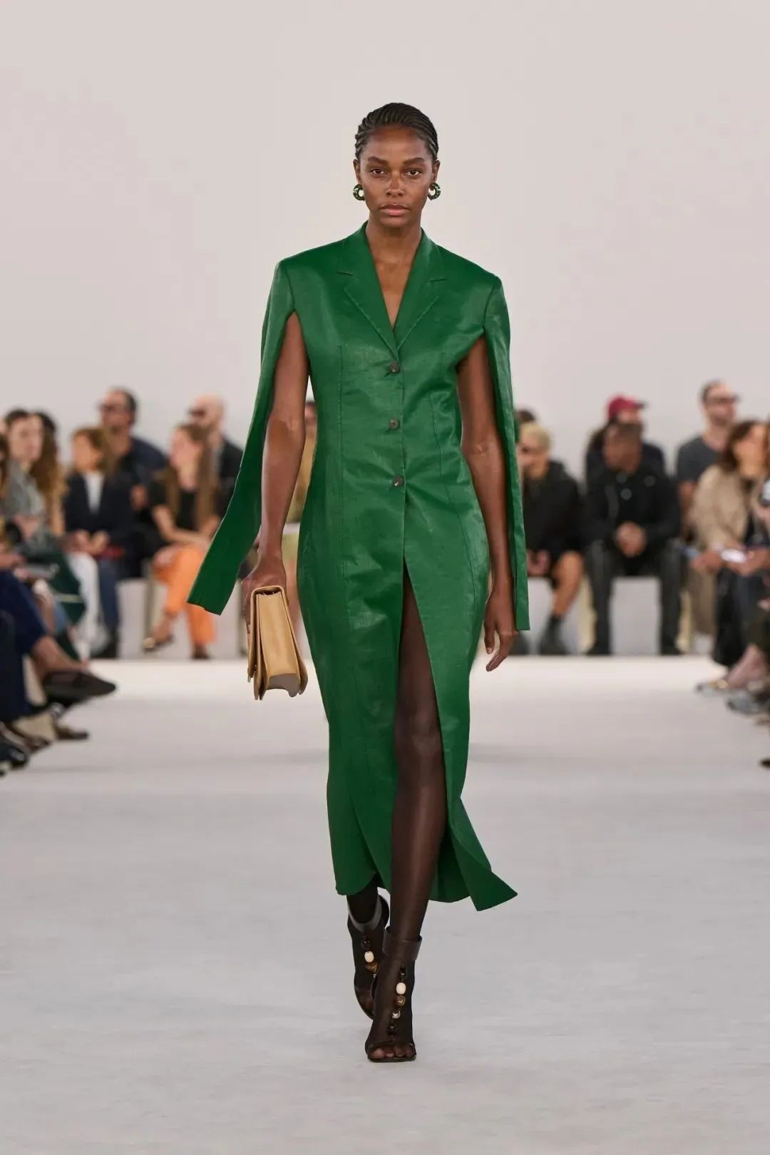 当然还有很强势的“森林绿”,它在FERRAGAMO 2024春夏系列的秀场上可是占据了一片天。比如LOEWE本季大秀就让整个空间沐浴在三种深浅不一的绿色基调中,为观众营造了一种沉浸式艺术体验。在这个如梦如幻的伊甸园里,创意总监乔纳森·安德森(Jonathan Anderson)以其英伦古怪与传统相融的独特设计语言,展现了对自然元素的热爱与敬意。然而在日常的中,很多人会觉得绿色不好穿,尤其是黑黄皮星人对绿色更是避而远之。但只要正确运用好绿色的比例,就能瞬间让它变得独特又高级。