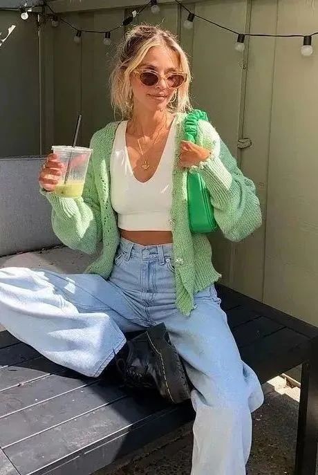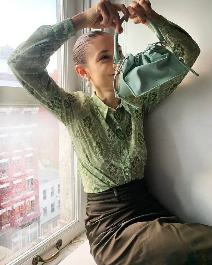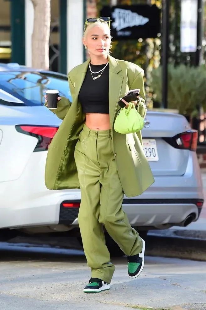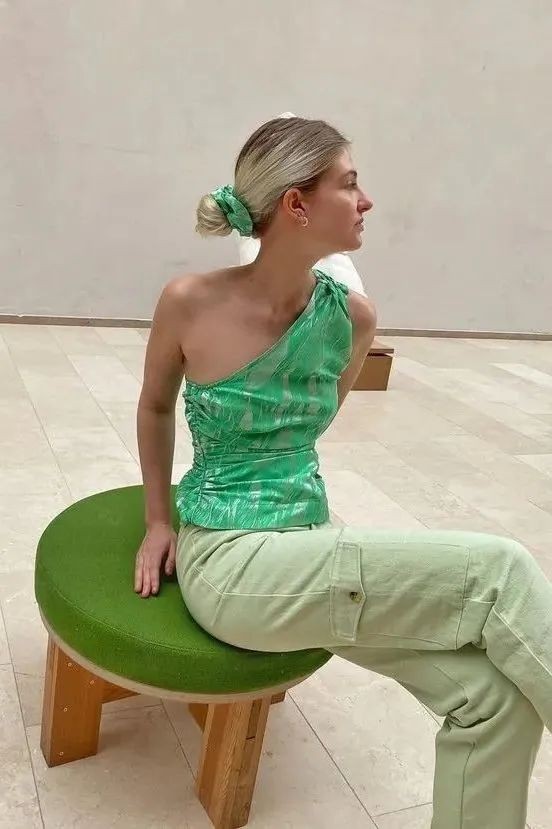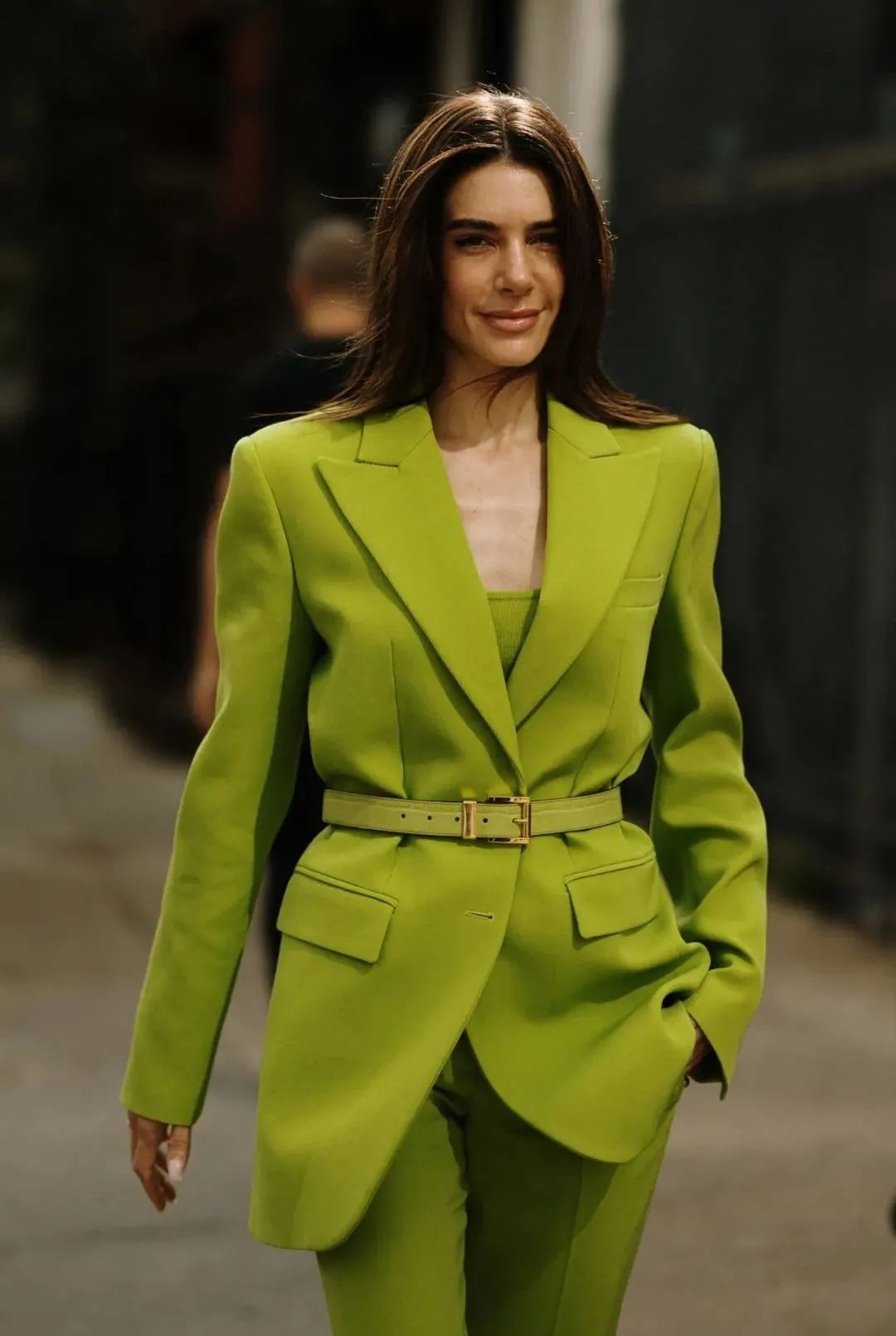 一身绿色套装将春意盎然的清新感发挥到极致。All Green穿着难度最低,紧紧抓住同色系穿搭的黄金法则,用饱和度不同的绿色搭配出层次感,这样的一身,想踩雷都难!剪裁流畅的服装,会让你从头到脚都散发出简洁大气的魅力,是“高级”两个字的最佳体现。若还担心大面积上身绿调不好驾驭,可以选择饱和度较低的绿色,像“鼠尾草绿”这样柔和的色彩就很不错!最常见的搭配无非是Half Green,比如一件温柔绿色系的上衣就可以瞬间让你在人群中脱颖而出,韩国的小姐姐们几乎在春日里人手一件。白色则是绿色和谐的拍档,清丽可人的柔和色彩让人恨不得多看几眼。而且两者结合更在复古领域有相当大的潜力,穿出复古名伶的优雅,简直不在话下。低饱和度的绿色搭蓝色单品也意外和谐,同样能营造出复古的调调。饱和度、明度较高的绿是黄黑星人的踩雷单品,所以缩小面积是最明智的做法。对于很多人来说,小面积的绿色是最容易驾驭的,可搭配性的灵活度也最高。这种方法是最适合新手小白的搭配法则,只要搭配好便可以轻松塑造出毫不费力的时尚感。将视觉重心转移到包包、鞋子、饰品等小物品上,给整身造型“做减法”,这样小范围的绿色更能为整个造型增添一丝亮彩,起到点睛之笔的作用。针织上衣是春夏最常见的单品,而绿色针织上衣,会让你的春日装束附加上森系少女的清丽脱俗感。温柔的Mint Jade(薄荷色调)带着的轻盈感,就像一瓶青柠味道的气泡水,不论是日常通勤还是出门游玩都能完美适配,怎能不令人心动?电影《赎罪》中,Keira Knightley身穿的绿裙子是多少影迷心中的经典!到了日常中,一条绿意盎然的连身裙分分钟让你温温柔柔的同时,也能气场全开,即使走在办公高楼间也能感受到一丝自然气息。饱和度较深的绿调遇上丝质反光面料,则将高级感最大化呈现,无形之中多了一丝慵懒复古的味道。除了纯色系之外,小清新的碎花与绿色也是天作之合,自带田园气息,惊艳却不张扬。换成带有绚烂花卉的印花让整体造型更具特色,带有浓郁的假日气息。相比常规的色彩,绿色的西装外套弱化了正式严肃感,自然干净透彻的轻盈感随即而来。欧美系街拍中则将西装的Gentlewoman风格放大,中性气息较为浓郁内搭短top在利落之余又又带着些许性感。不过在整体的配色上还是要多加注意,依旧要遵循less is more原则让绿色作为亮点,才能穿出松弛有度的感觉。小单品是起到点睛整体look的效果,一支设计感的绿色包包轻松开始撞色mix~跟着造型选择同色系的配饰,就算运动的风格都有精致的味道。这个春天换上“格林系”绿装,做一个清丽可人的Charming Girl吧!
