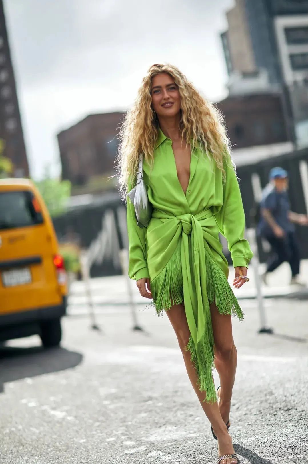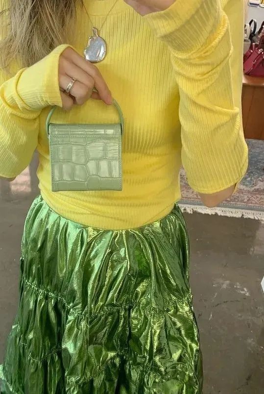 谁懂,被《你好星期六》的全员春日多巴胺给迷住了!蔡文静和刘浩存的春日“格林系”也太治愈了,真的很难不喜欢活力十足的女孩们!随着天气渐暖、万物复苏,我们穿着的颜色也逐渐亮眼起来。清新且活力满满的绿色,你确定不要了解一下吗?所谓格林系就是“All Green”——以绿色系为主色调的穿搭风格。它就像格林童话带给我们的意义一样,带来治愈、舒适的同时,明亮惹眼又不过分Drama,是2024年的开年第一波流行风格。嗅觉敏锐的时髦精们也都紧跟其上,一连上身不少“绿意盎然”的春装。不同饱和度的绿色与浪漫的花草纹理结合,既有少女感又充满女人味,是春夏“绿装”的最佳示范。虽说格林系是2024年的开年第一波流行风格,但绿色并不是第一次受到时尚圈的青睐。走气质路线的Bottega Veneta家就十分钟情这抹绿。从2020秋冬的“芥末绿”,到今年2021春夏的“蜜蜂绿”,满眼的绿意迎面扑来,给品牌烙上了标志性的色彩。到2022年春夏又奶又仙的“牛油果绿”和 “鼠尾草绿”衣衫席卷idol们的衣橱,把大家变成随处可见的绿色小精灵!