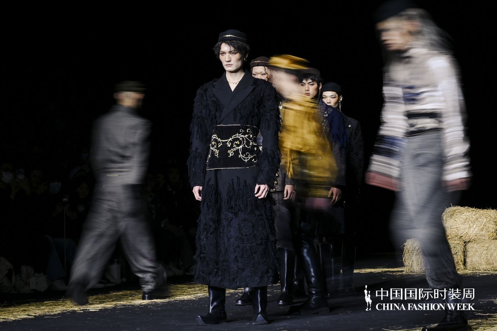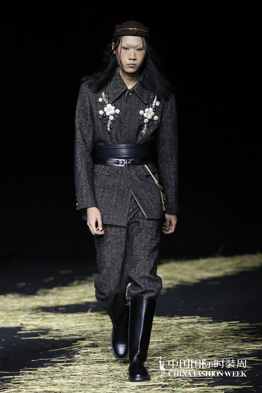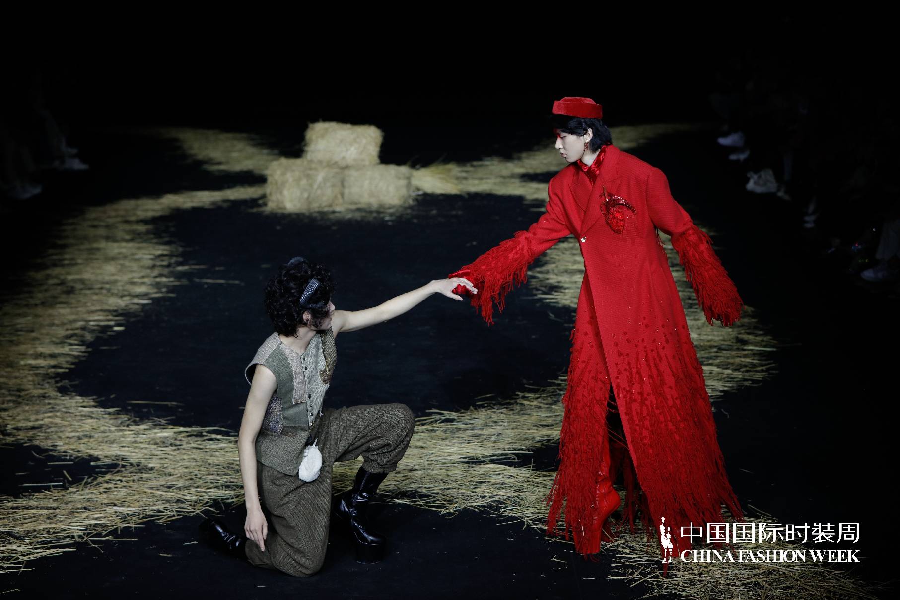 随着秀场剧情的推进,观众跟随4位不同时期的“牧羊少年”一起踏上旅途,重新经历追梦道路上的代表性时刻,从家乡的农庄、到广阔的山河湖海、再到神秘的沙漠,服装本身化为语言,结合模特富有张力的肢体表演,重现了一段段高潮迭起、情绪饱满的“时装戏剧”。
