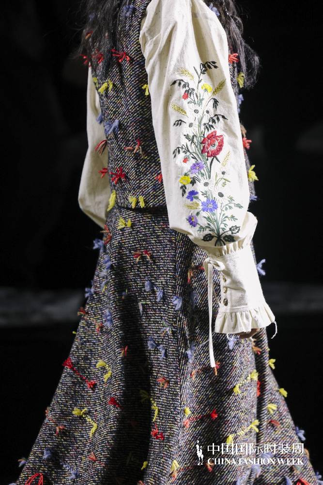 引人入胜的秀场演绎固然精彩,盛景之下的脉络和纹理更能体现VALLEYOUTH山谷少年对于服装的精湛驾驭能力。正如本次《牧羊的少年》,VALLEYOUTH山谷少年把持自己浪漫优雅的美学基因,融合大量的法绣、丝带绣、毛线绣、立体绣等传统工艺以及大量手工制作,以品牌价值观为内核和源点,让设计和工艺沿着故事呼吸、生长,最终成为新鲜感、惊喜感满分,同时很“山谷”的形状。