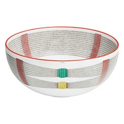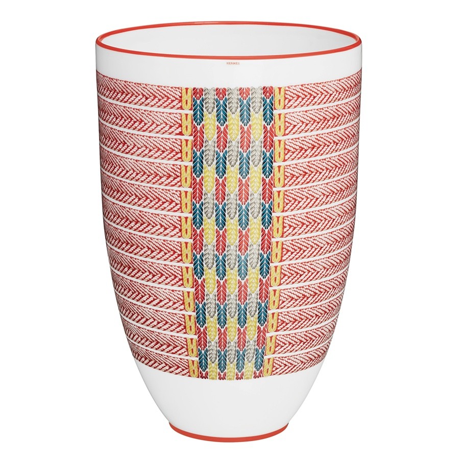该系列创作灵感源自马具制作中所用的金银线镶边和编织工艺。交织缠绕的棉线与皮革线纹织就具象与抽象交叠的意境,跃动于工匠的指尖,亦象征着骏马与骑手之间的联结。洁白瓷面的映衬下,法国艺术家 Virginie Jamin 的精确笔触愈显细腻,呼之欲出的纹理量感让质朴自然的浓烈色彩愈加生动鲜活。整个系列共计 27 件精致杰作,其中包括十款深皿新作。