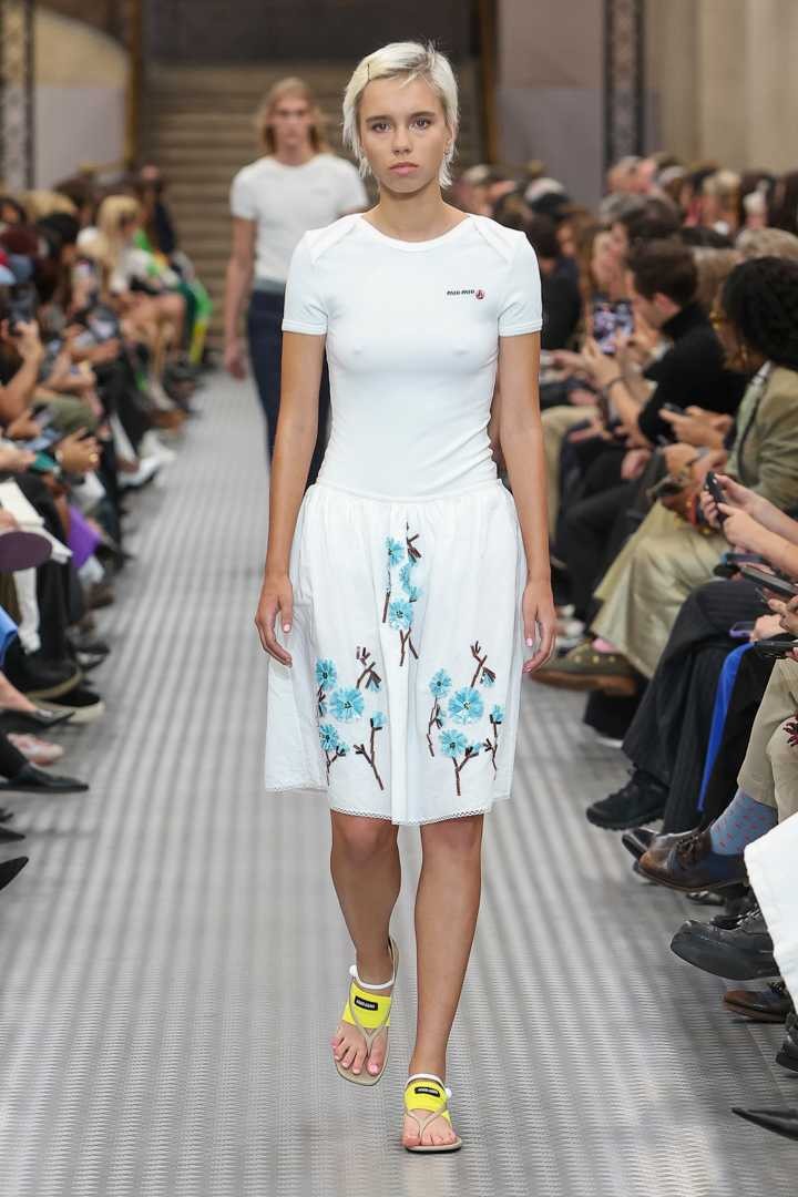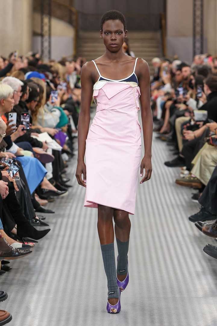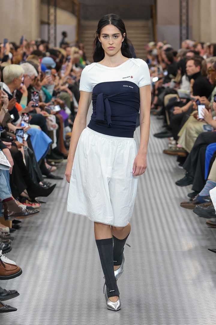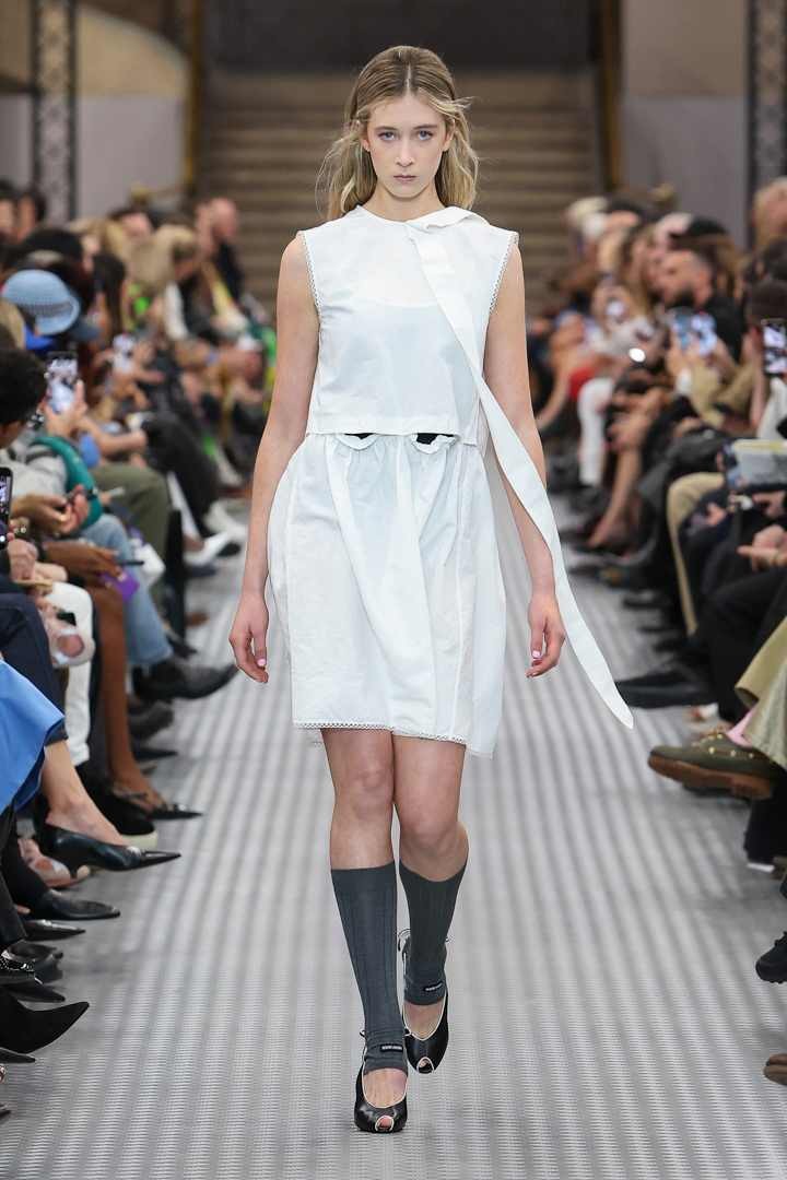如果说2024秋冬系列提出了一种跨越生活经验的全景式服装语汇,那么Miu Miu 2025春夏系列则进一步探索了青年时期这个绝对真实的时期。在学会掩饰之前,每个人都诚实地面对自己,面对自己的理想。作为对过度刺激和信息泛滥时代的一种反应,简洁的服装可以提供清晰和精准,成为性格的真实框架。
