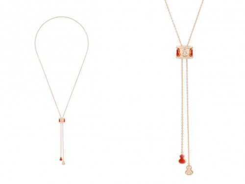 老铺黄金以黄金珠宝见长,其设计体系中常可见对中国传统题材与金工工艺的延续。在部分项链与吊坠作品中,品牌以“福”“吉祥寓意”等东方文化符号为灵感来源,通过细腻的金工细节与立体造型呈现,体现出对传统审美的尊重。